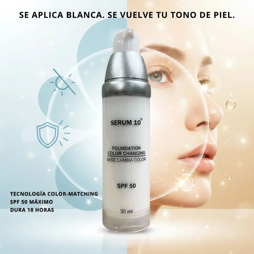 Tu piel merece verse radiante sin esfuerzo. Esta base inteligente con pigmentos adaptativos se funde con tu tono natural, cubriendo ojeras, manchas y poros en segundos. Su fórmula ligera hidrata, controla el brillo, protege del sol y se mantiene intacta todo el día sin verse pesada ni obstruir los poros.